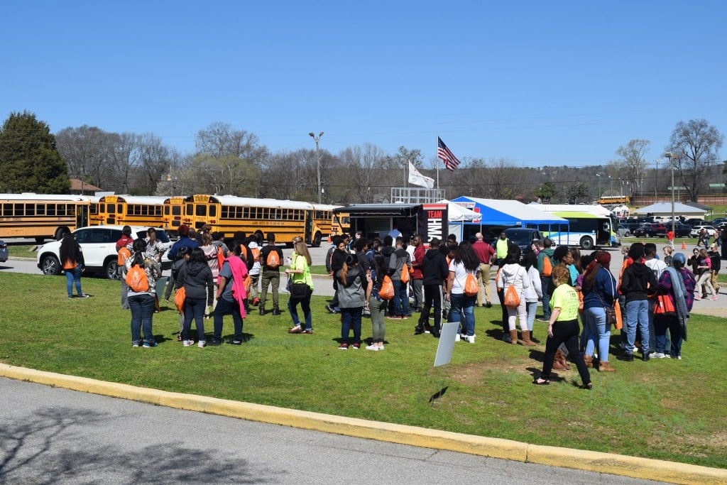 8th Graders from Emma Sansom, Gadsden, and Litchfield Middle Schools attended Worlds of Work in Oxford, Alabama learning about career paths through hands-on experiences. #gcsctech #gcstitans
