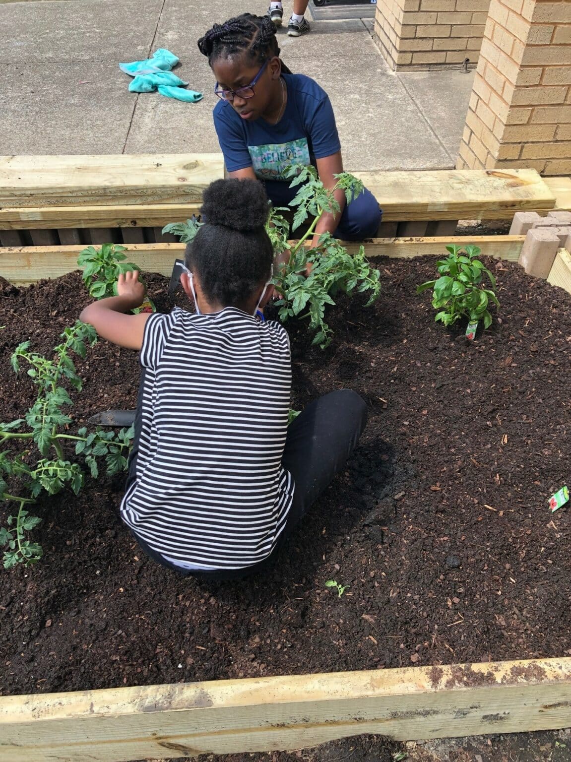 There were a few students who absolutely went above and beyond to help, work, and ask lots of questions. They even read the tags in the potted vegetables to tell us all how far apart to plant and how much sunlight is needed. I was beyond proud of them and their interest in the project. They are especially excited to be able to show the younger students that they built the beds and to see how they progress to make everyone happy at Thompson.